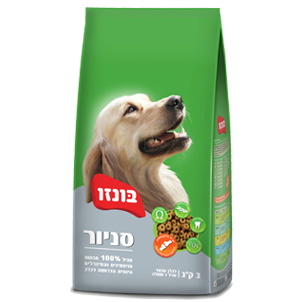 בּונזו סניור הינו מזון יבש בשרי, מלא, מאוזן וטעים המותאם לכלבים מבוגרים (מגיל 7 ומעלה). מותאם תזונתית לתהליכי ההזדקנות של כלבים מבוגרים הבאים לידי ביטוי בהאטה בפעילות גופנית, שיניים חלשות ועוד. כאשר אתה נותן לכלבך בּונזו, אתה יכול להיות שקט שכלבך מקבל תזונה יומית, הממלאת את כל צרכיו התזונתיים.