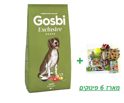 גוסבי אקסלוסיב מזון לכלבים-בוגר כבש 12 ק"ג +אריזת חטיפים ומשחקים מפנקת