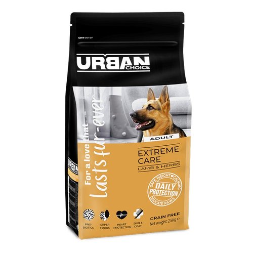 באמצעות תזונת URBAN CHOICE כבש וצמחי מרפא 2.5 ק"ג כלבכם יהנה מיחס מאוזן של של חלבון, שומן, ופחמימות, התומכים במשקלו התקין בתוספת L קריניטין וסיבים תזנותי
